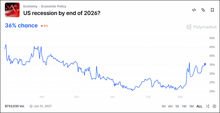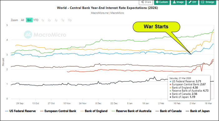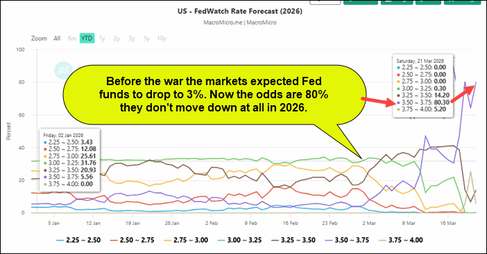 Right up to the start of the war, markets were pricing in two potential cuts this year. Now the odds are 80% there will be no cuts in 2026