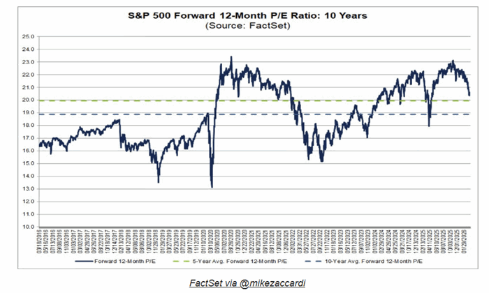 As a result of the strength in earnings and expectations, the current market correction reduces the bearish argument of high valuations by compressing earnings multiples. This is shown in the chart below.