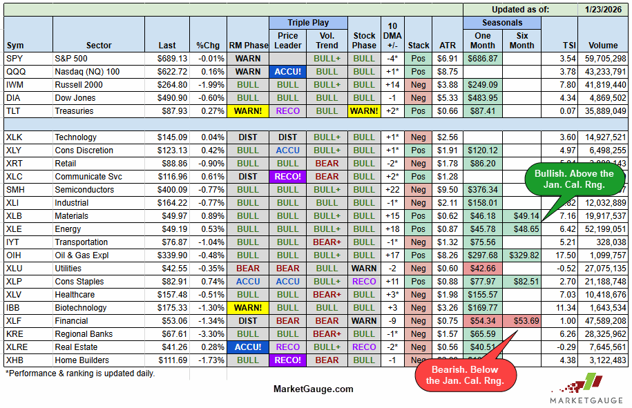 The two big levels to watch on the downside in the indexes, the sectors, and individual stocks are the January Calendar Range low that was set LAST THURSDAY and the 50 DMA.