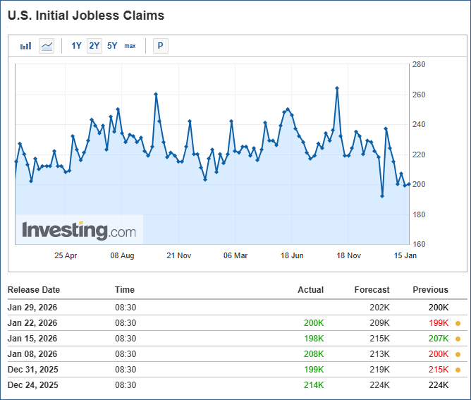 Additionally, initial jobless claims were reported at 200,000, slightly better than the 209,000 forecast. More importantly, it demonstrated that the trend since early November has remained down.