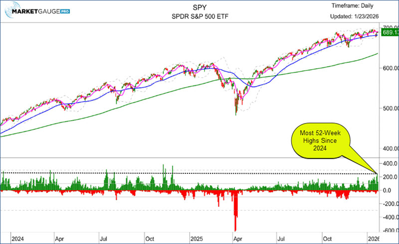 Remarkably, you can see in the chart below from Big View that the number of 52-week highs reached its highest level since 2024.