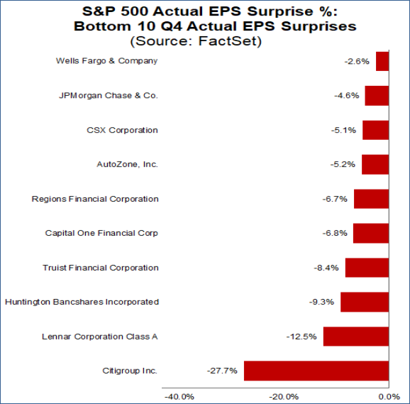 As you can see below in the chart of FactSet’s reporting on the 10 worst earnings misses of the week, 7 of the 10 were banks.