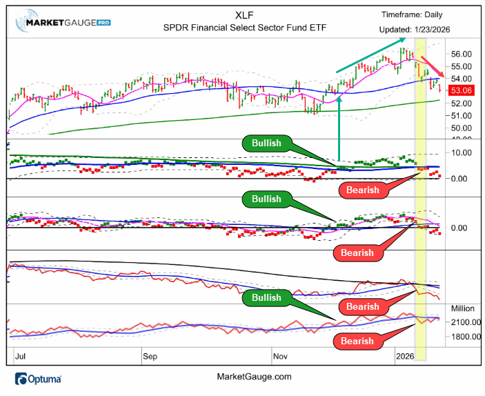 Recall that the feature image chart of this article showed that XLF was one of the worst-performing sectors last week. This is not a good sign because this had been a leading group at the end of 2025.