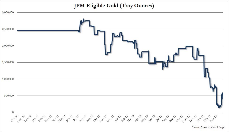 Back in 1964, the plot of the movie Goldfinger (one of the great James Bond movies), villain Myron Goldfinger attempts to corner the Gold market only to be thwarted by James Bond. Fast forward to the late 1970’s and the real life Hunt brothers cornered the silver market by taking delivery of as much silver their multi-billion dollar fortune would allow. They did this partially by buying Comex silver contracts, taking physical delivery and then shipping it out of the country on private jets, as they had concerns the government would seize their hoard. This took silver from around $5 an ounce to $50 with silver going limit up for days before it crashed, causing the Hunts to go bankrupt. The Comex (the metals futures exchange) Board of Directors fearing a default, changed the rules and only allowed for selling silver on liquidation only, breaking the back of the corner, causing silver to go limit down for weeks, while inflicting financial ruin for several brokerages houses and the Hunts as well. As a member of Comex in the 1970’s, I had a front row seat to financial history. Which bring us to the present, where we just had a historic drop in Gold prices along with an historic drop in Gold‘s physical reserves. The amount of physical gold held by JPM (the world’s largest custodian) has dropped to its lowest levels in history. What is very strange is how prices could drop at historic rates while the demand for physical gold is at its highest levels in history. Is someone making a call on the viability of the institutions that are maintaining our markets? Are the powers that be manipulating the markets to force liquidation and pop the emerging bubble? JPM are the biggest custodians of physical gold and their reserves have dropped to just 400,000 ounces from over 2 million ounces, almost 20% in one day!