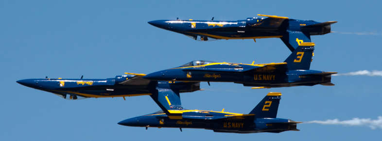 These accomplished Naval and Marine men and women perform from March to November each year. The estimate is that 11 million direct spectators view their acrobatics. During the show (and the practice) they fly up to 700 mph, but won’t go over that speed to avoid creating a sonic boom. When flying together at those speeds, the closest they will fly to another plane is 18 inches. Since 2000 they have been flying Boeing F/A 18 Super Hornet aircraft.