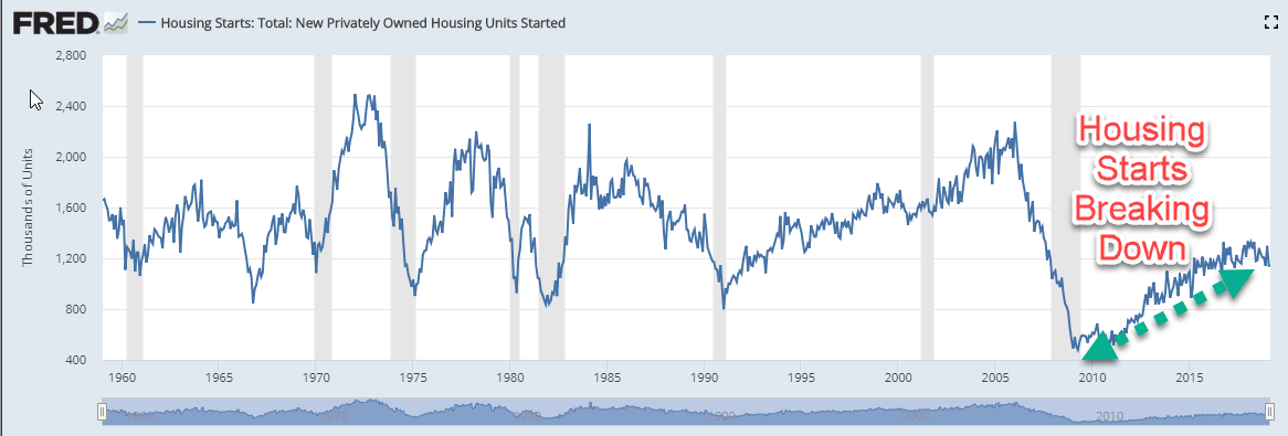 One of the better leading economic indicators is housing starts and that dropped sharply in March. This followed a big drop in February where the market was expecting a large increase and got blind sighted with a 9% drop. Overall, housing starts are sitting 2 years lows. Homebuilders (XHB) are doing respectably in 2019, but far from all-time highs.