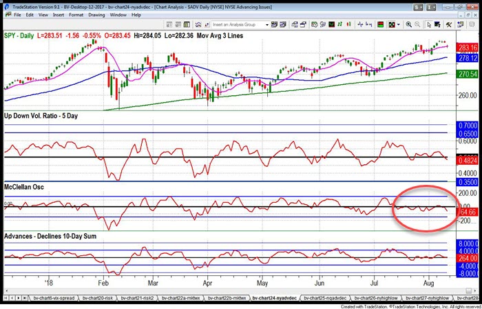 Additionally, the New High/Low Ratios for both NYSE and NASDAQ are weak.