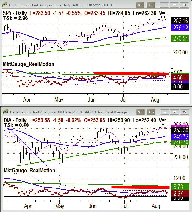 If you look at the NASDAQ chart with the same indicators, you’ll see a very similar picture of weakness.