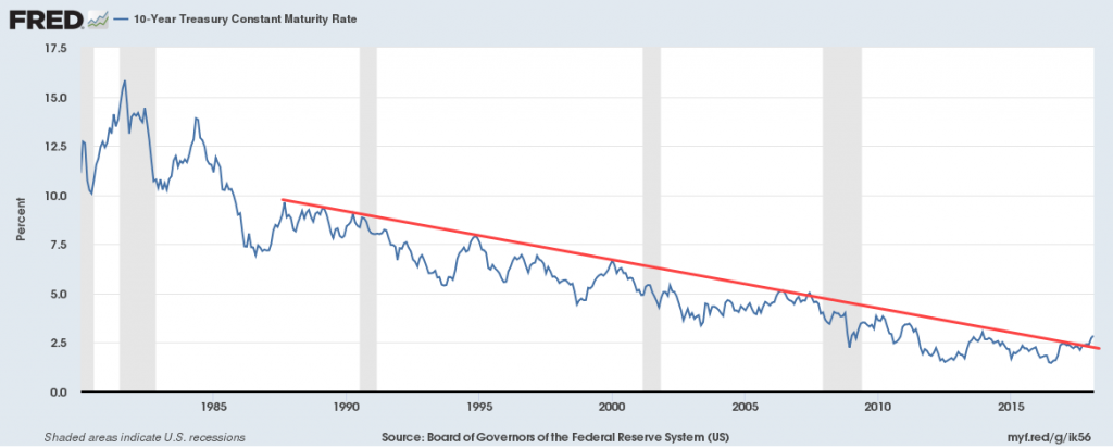 Rates have risen sharply and currently sit on the verge on reversing a 30-year downtrend! See FRED chart below.