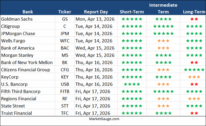 Below you’ll find a table of major bank announcement dates next week.