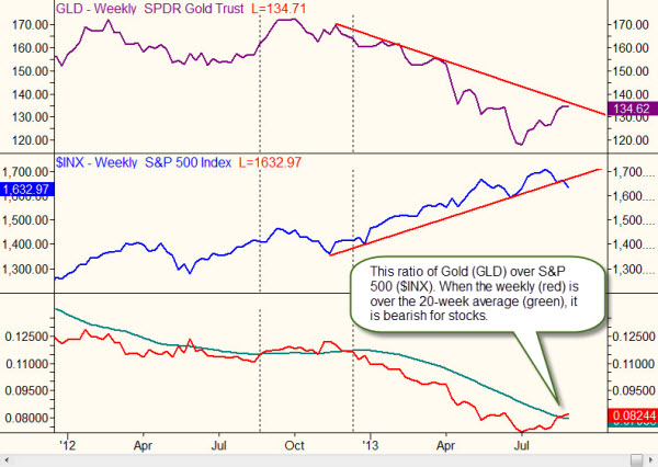 As you can see in chart #2 the GLD / S&P 500 ratio is now pointed in a the direction that indicates that GLD will outperform SPY over the coming weeks if not months. When this weekly ratio gains enough momentum to cross its 20-week moving average, the SPY’s tend to remain strong (or in this case - weak) for weeks to months.