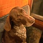 Our brown earth dog wonders, “Once this train gets moving, do I want to go north or south?