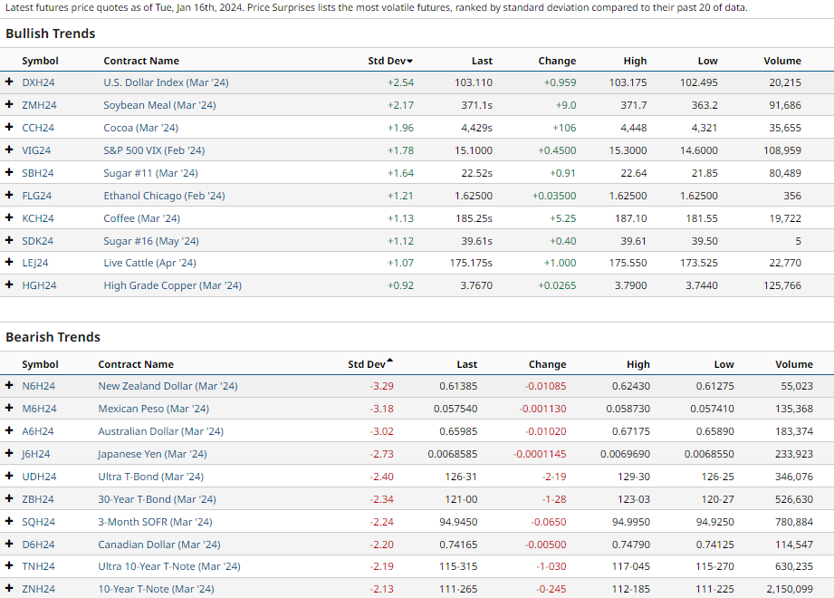 The Bearish Trends or losers were foreign currencies, long bonds and (not shown on the chart) US equity indexes.