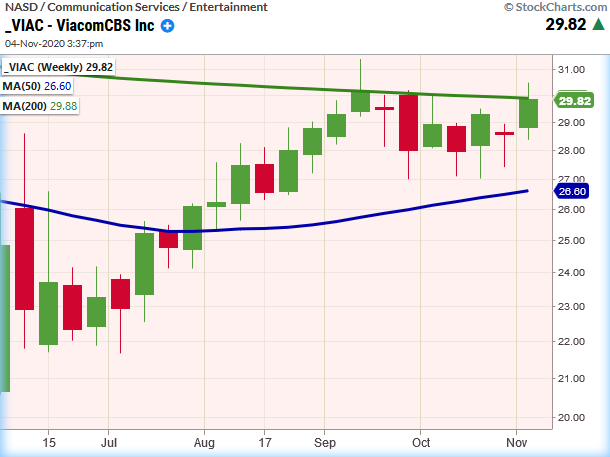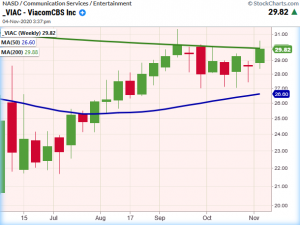 We are looking at several setups, particularly VIACOMCBS (VIAC) which reports on November 6th.