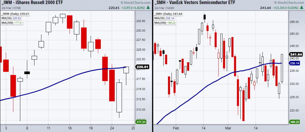 The small caps (IWM) and Semiconductors (SMH).