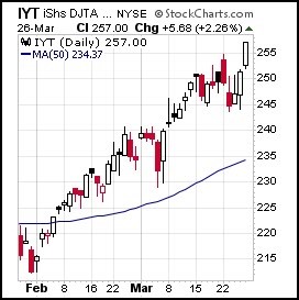 Friday, IYT broke to new all-time highs.