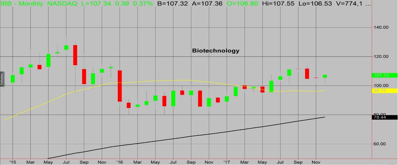 IBB (Biotechnology) Through 107.50 see 110 at least. Under 105 some trouble.