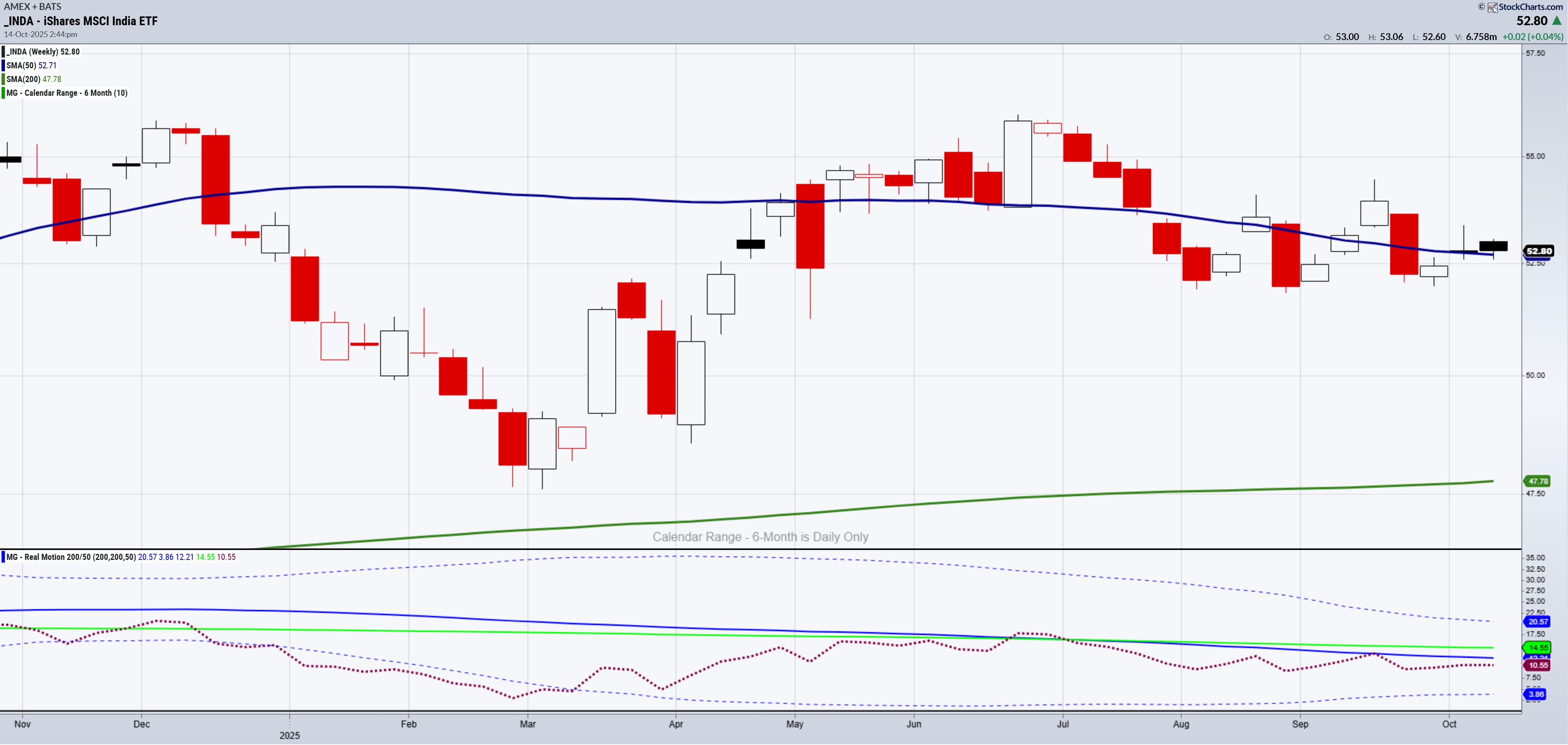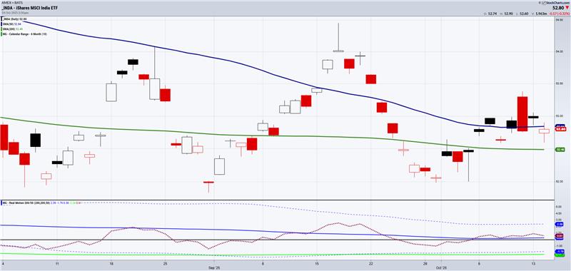 INDA has been above it so far in October, while currently it struggles to maintain that level.