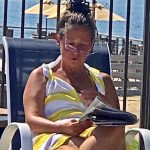 In the case of my unsuspecting subject, she’s got her glasses so far tilted, she can make up whatever words she desires to see.
