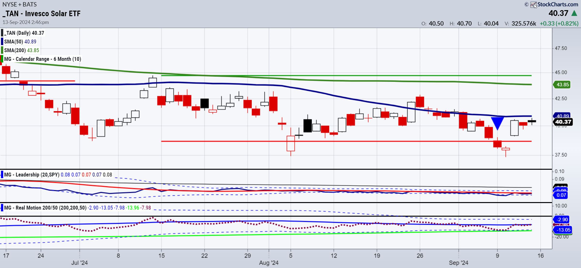 The TAN: SPY performance is basically on par. TAN is back above the July 6-month calendar range low.