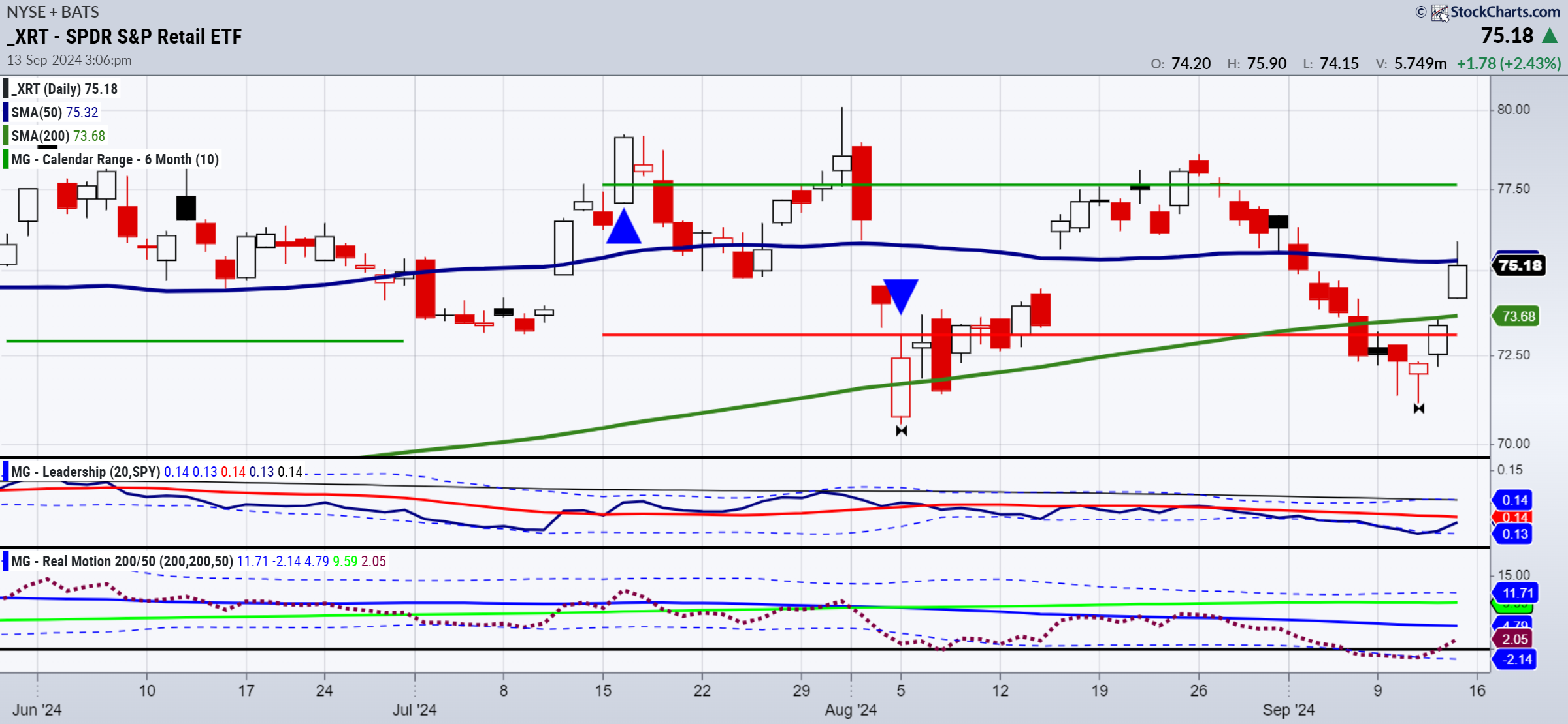 Retail (XRT) 73.50 support 76.50 resistance