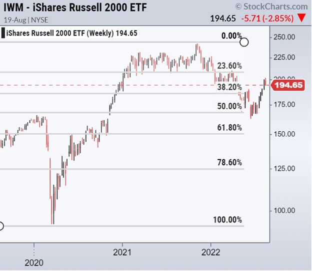 IWM is down (-13.61%) year to date, so small cap stocks are lagging the SPY (-11.63%) and DIA (-7.83%) and only leading the QQQ which is down (-19.62%).