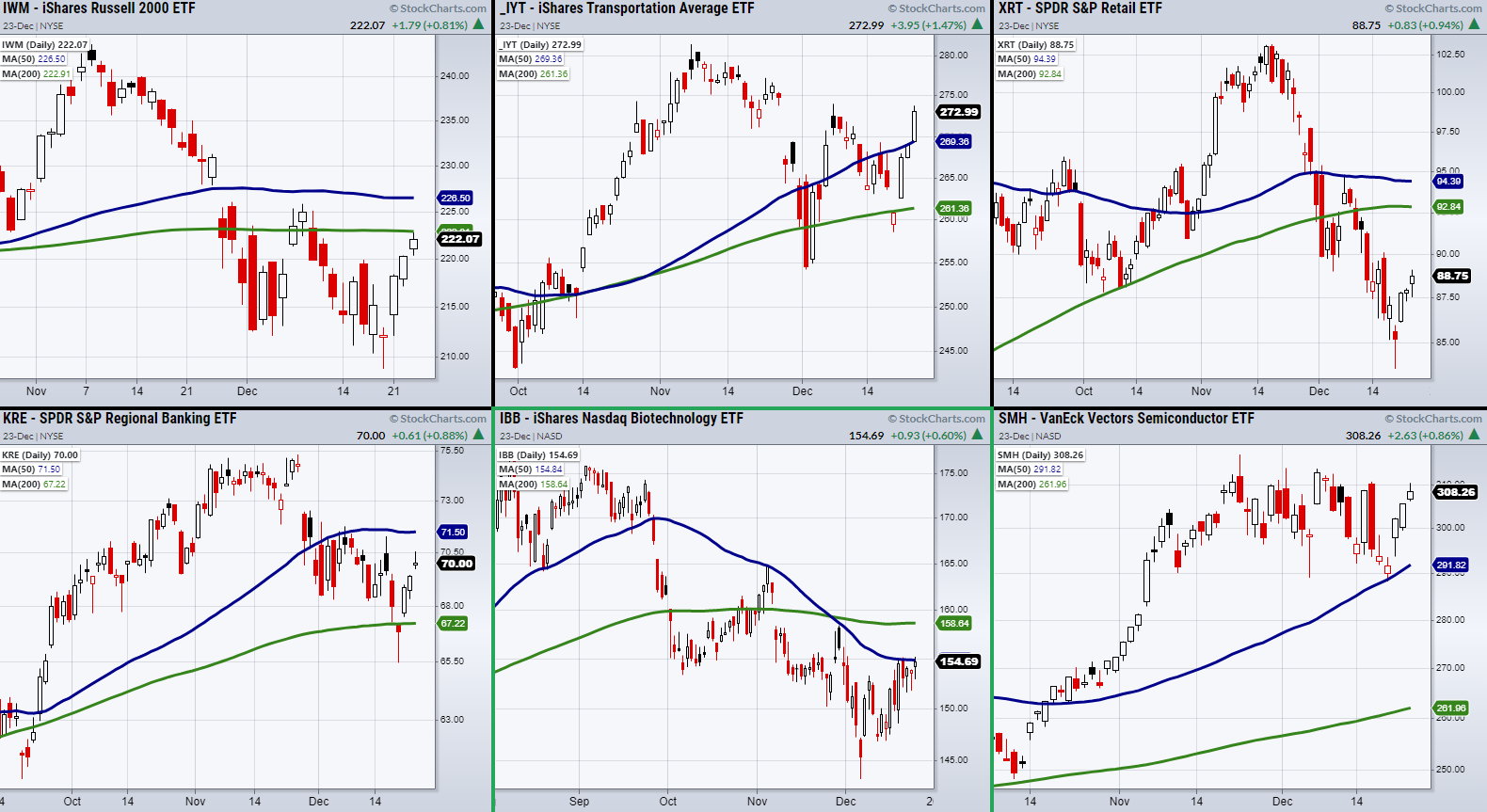 With that said, the overall short-term trend is positive heading into 2022, however, we are not out of the waters yet since most of these key ETFs and IWM are sitting or heading right into resistance from the highs.
