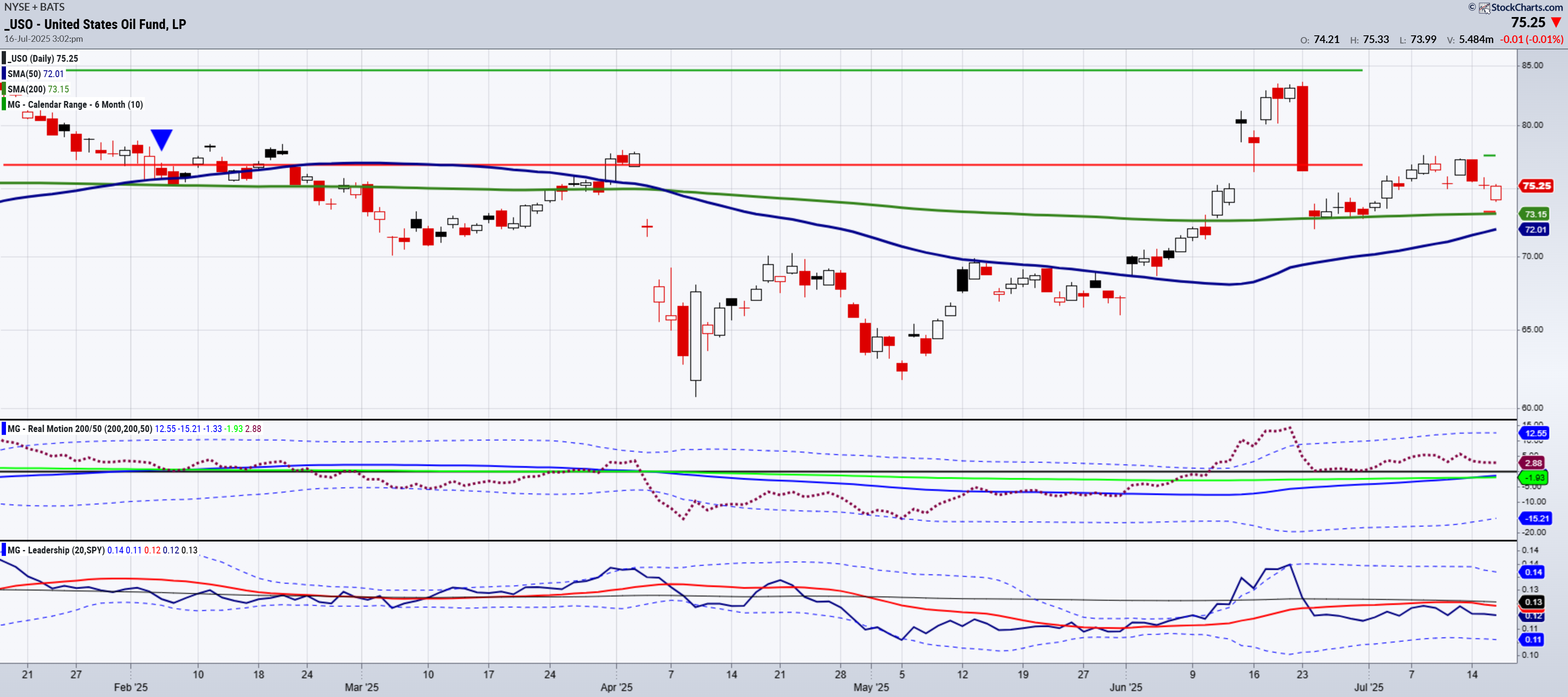 USO Daily chart shows a couple of interesting data points.