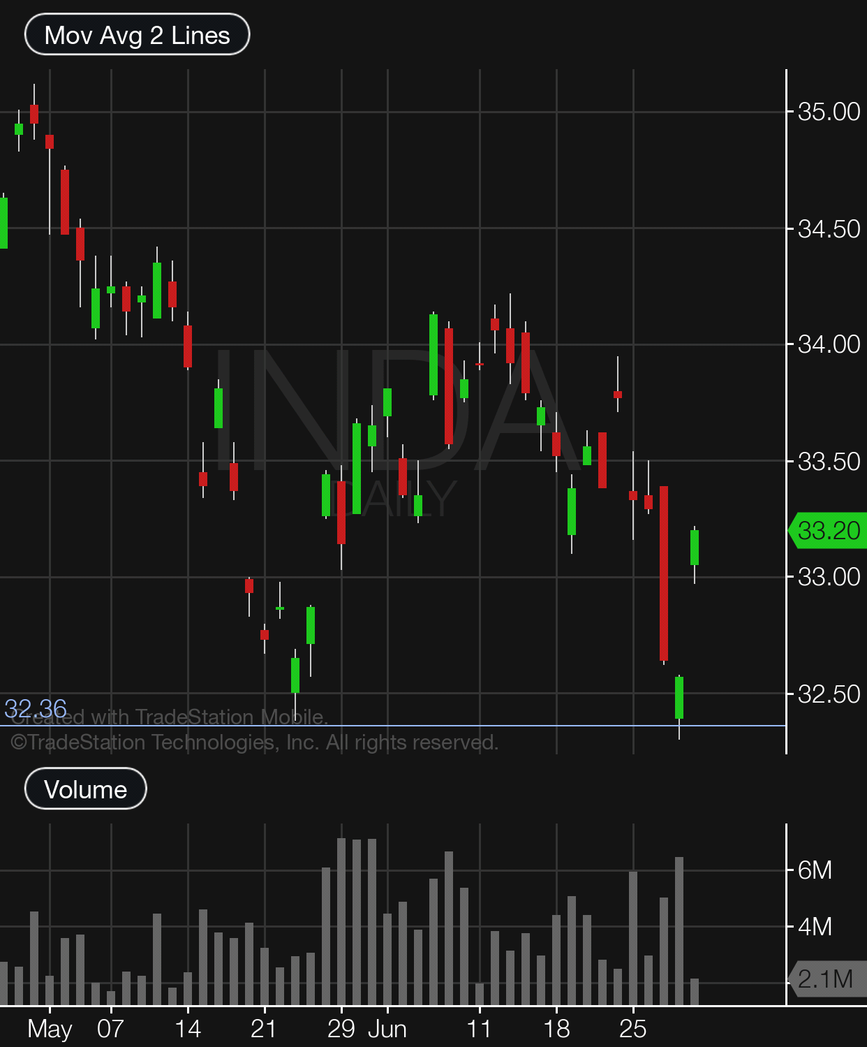 Finally, I like to watch commodity rich country ETFs. Brazil EWZ, for example. Or India (INDA), of particular interest right now.