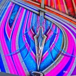 The low rider trend in New Mexico incorporates some very fancy paint work on the body of the car.