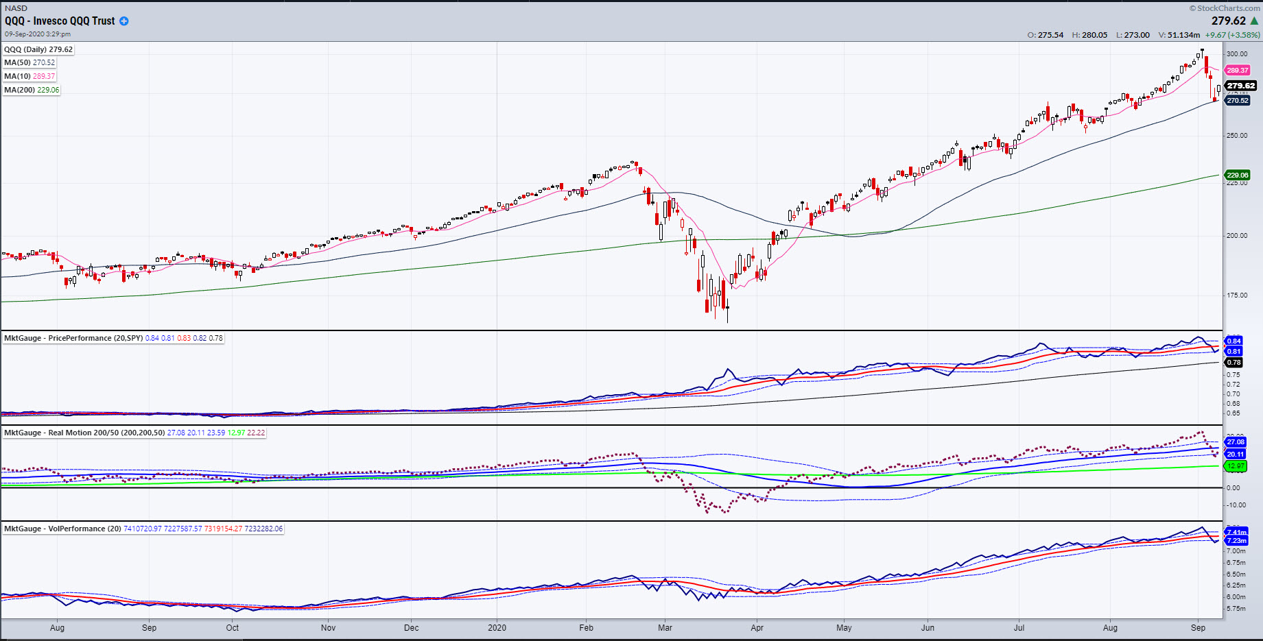 After a perfect touchdown in the NASDAQ QQQs to the 50-DMA at 270, today, NASDAQ gained 2.92%.