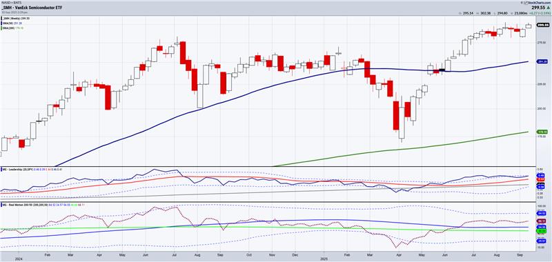 We see a test of the all-time highs. SMH far outperforms the SPY and momentum is good but not amazing.