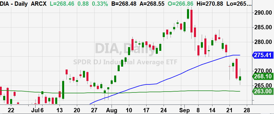 Dow (DIA) 263 support but first we have the 9/21 lows