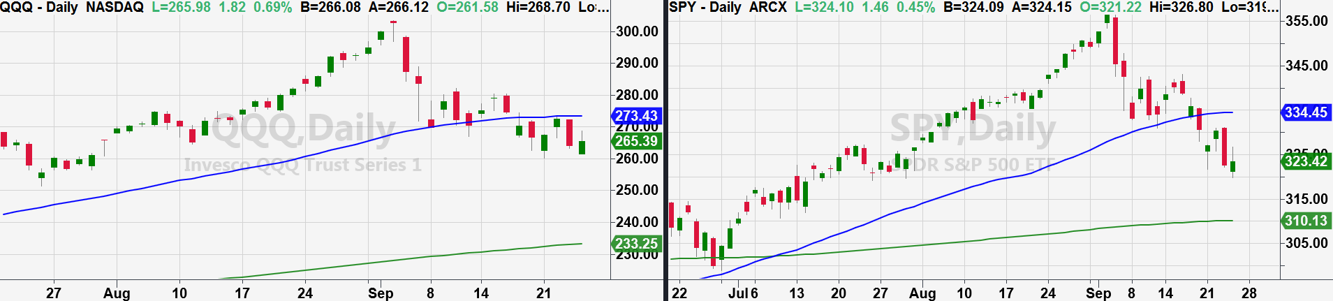 Today the QQQs, SPY, and DIA, closed near the September 21st lows which we noted as possible support.