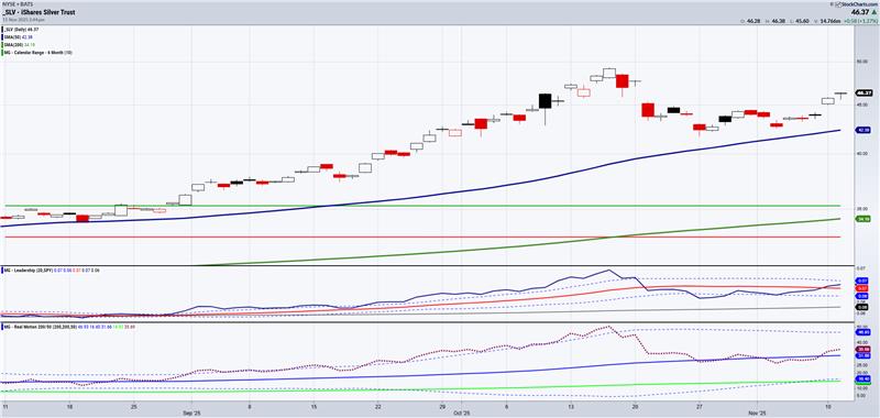 Also note the Leadership indicator. Silver is beginning to outperform the SPY.