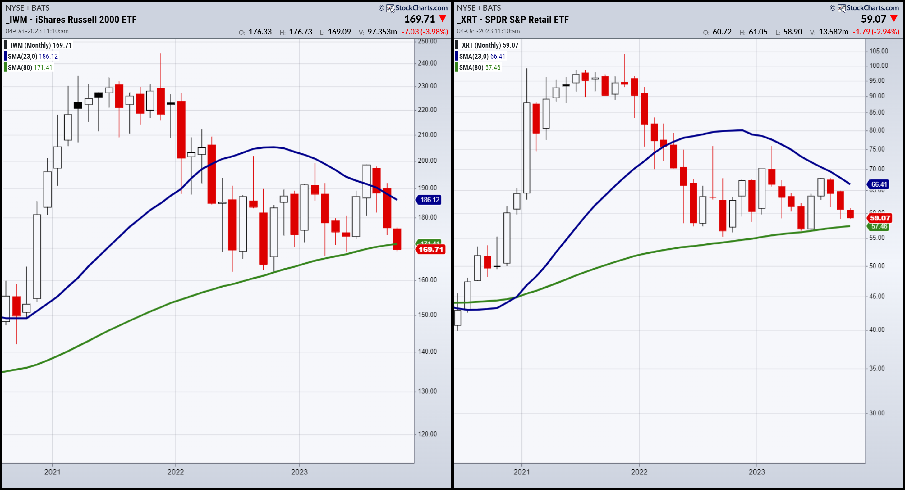 Yesterday, we covered the 80-month moving average in small caps and retail.
