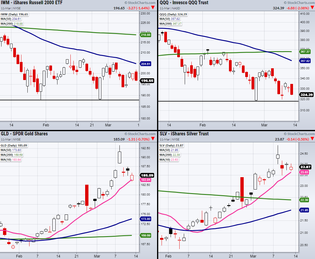 With that said, gold (GLD) and silver (SLV) while down half a percent, are holding a strong uptrend over their 10-Day moving average.