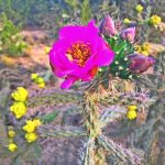 Known as the cane or walking stick flower, this Cane Cholla contrasts beautifully against the prickly spines of the cactus plant.