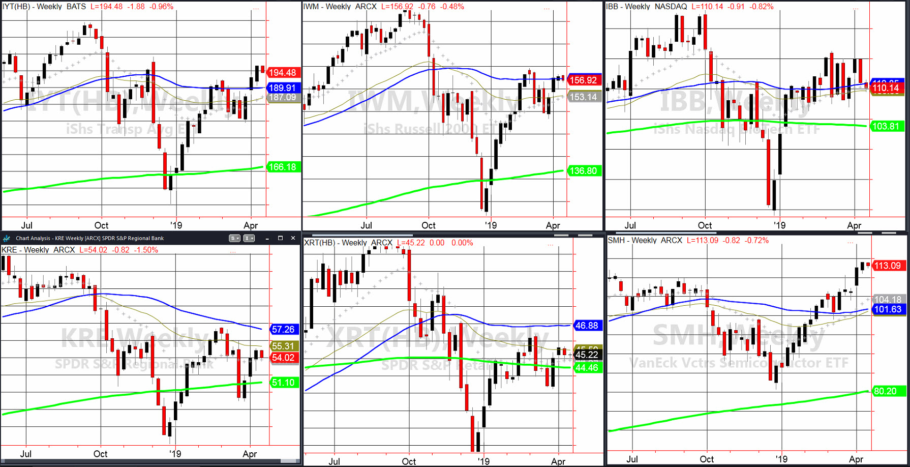 At the close of last week, the Russell 2000 IWM, Semiconductors SMH, Transportation IYT and Regional Banks KRE performed well.