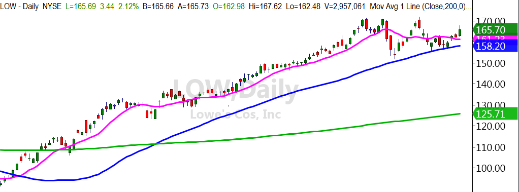 LOW is the symbol for Lowes Retail Company, which has clear resistance at about 171.
