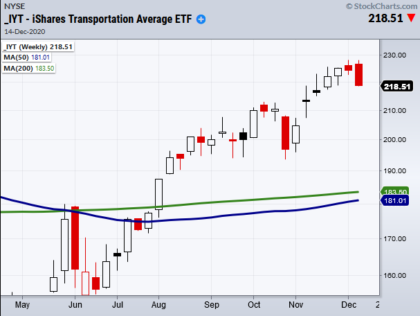 Furthermore, IYT has support from the highs of October and from the 50 day moving average at 212.45.