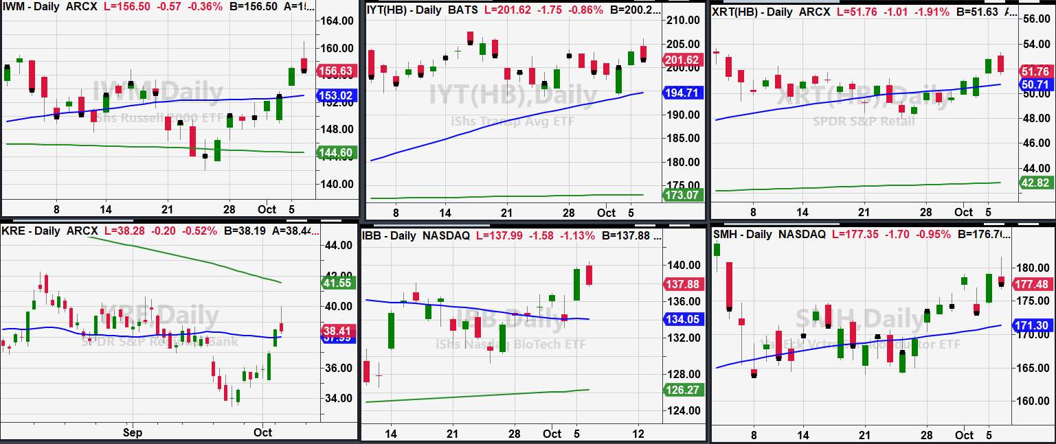 We have recently kept an eye on these two, as indicators of market strength or weakness.
