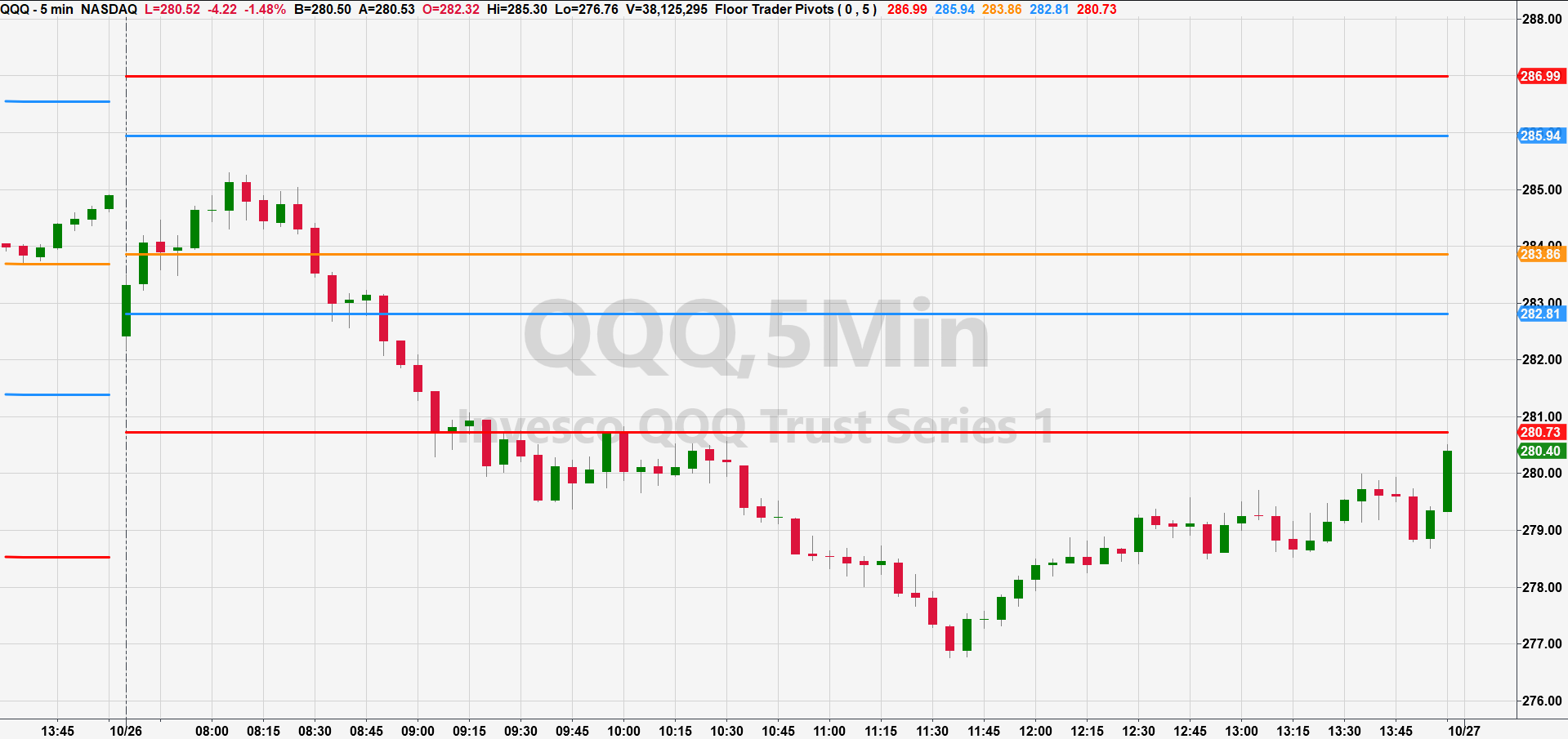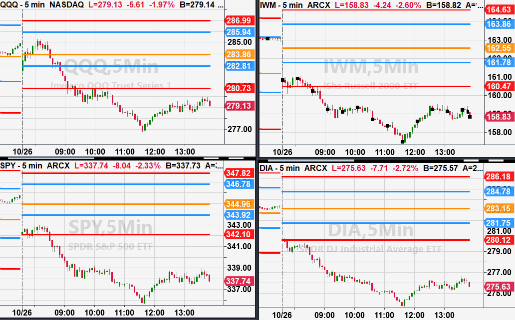 As you can see IWM, SPY, and DIA opened under S1 and then broke under S2 shortly after.