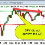 As you can see in the charts below, today the SPY was not able to substantially break its O.R. high, and as a result provided you with insight that today was not likely to be a big trend day like the QQQ and IWM were suggesting!