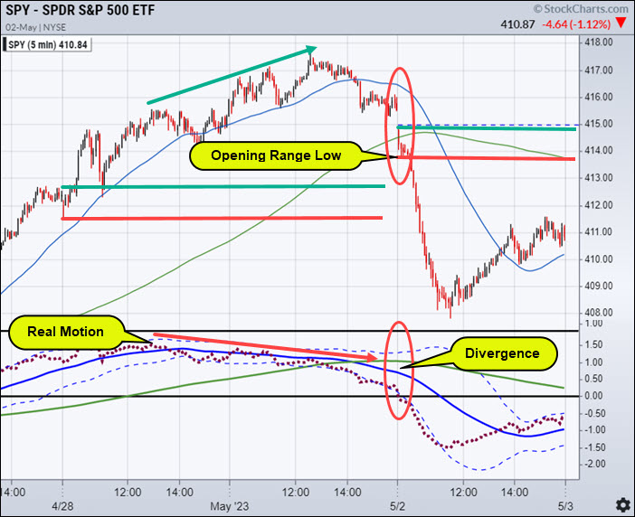 As a result, when the SPY broke its 30-minute Opening Range low (as shown in the chart below), it accelerated lower.