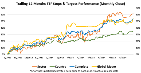 When we first sat down to design and build the ETF models we always had as one of our intentions to build multiple models, all with the same basic rules, but that would focus on different areas of the financial markets. We now have three models, the Sector Plus, the Country Plus, and the Complete (which adds in the Global Macro Plus model).