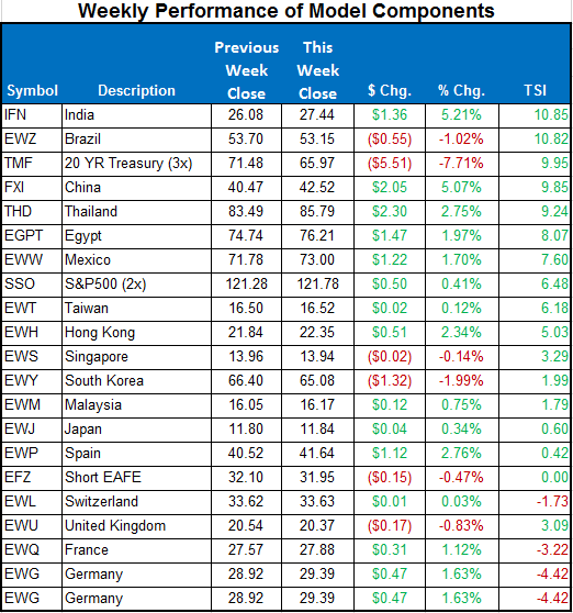 Here is a summary of the weekly performance of all the ETFs that the strategy monitors: