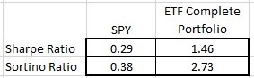 We have just such a skew in the ETF Complete Portfolio where the downside returns have less volatility than the upside returns. This means that we should expect a more favorable Sortino score.
