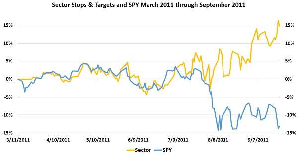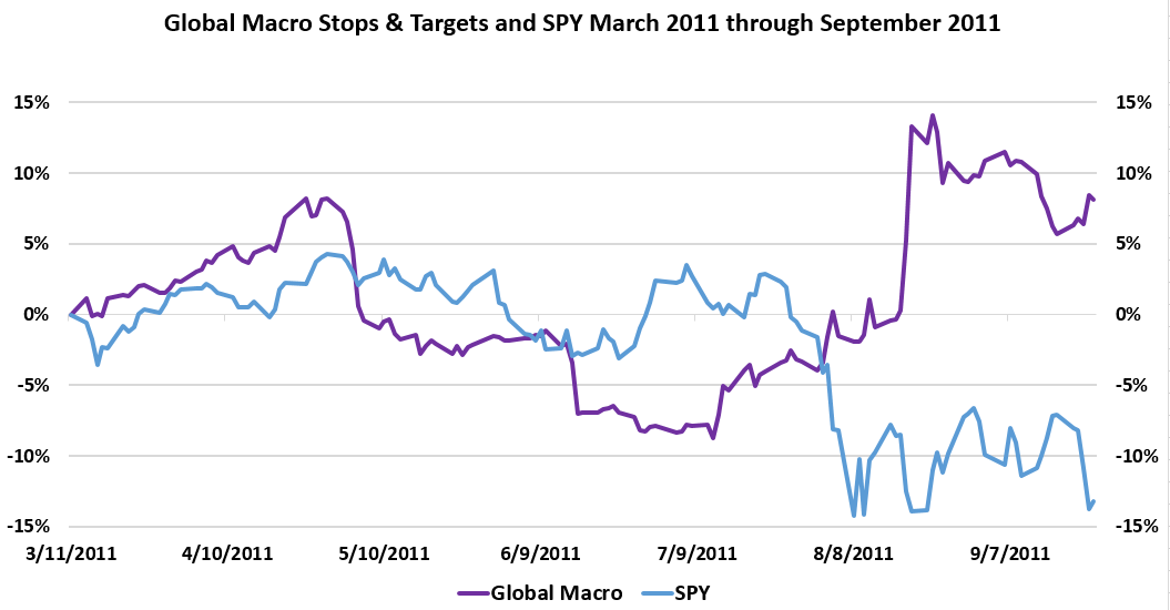 With this in mind, let’s peel the layers of a model and market drawdown. Our first example is from mid-2011. There are more than a couple similarities between this example and some of the things occurring in the markets recently.
