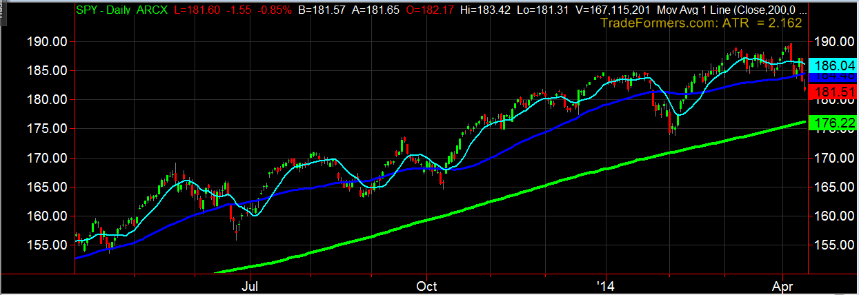 This was a rough week for the ETF Sector Plus model. It was a rough week for the markets in general. The SPY and the DIA took out the 50 day moving average and the IWM made it all the way to the 200 day moving average with the QQQ trying its hardest to follow suit. The selling pressure was the greatest in some of the high beta technology and biotechnology names that have been market leaders for quite some time.